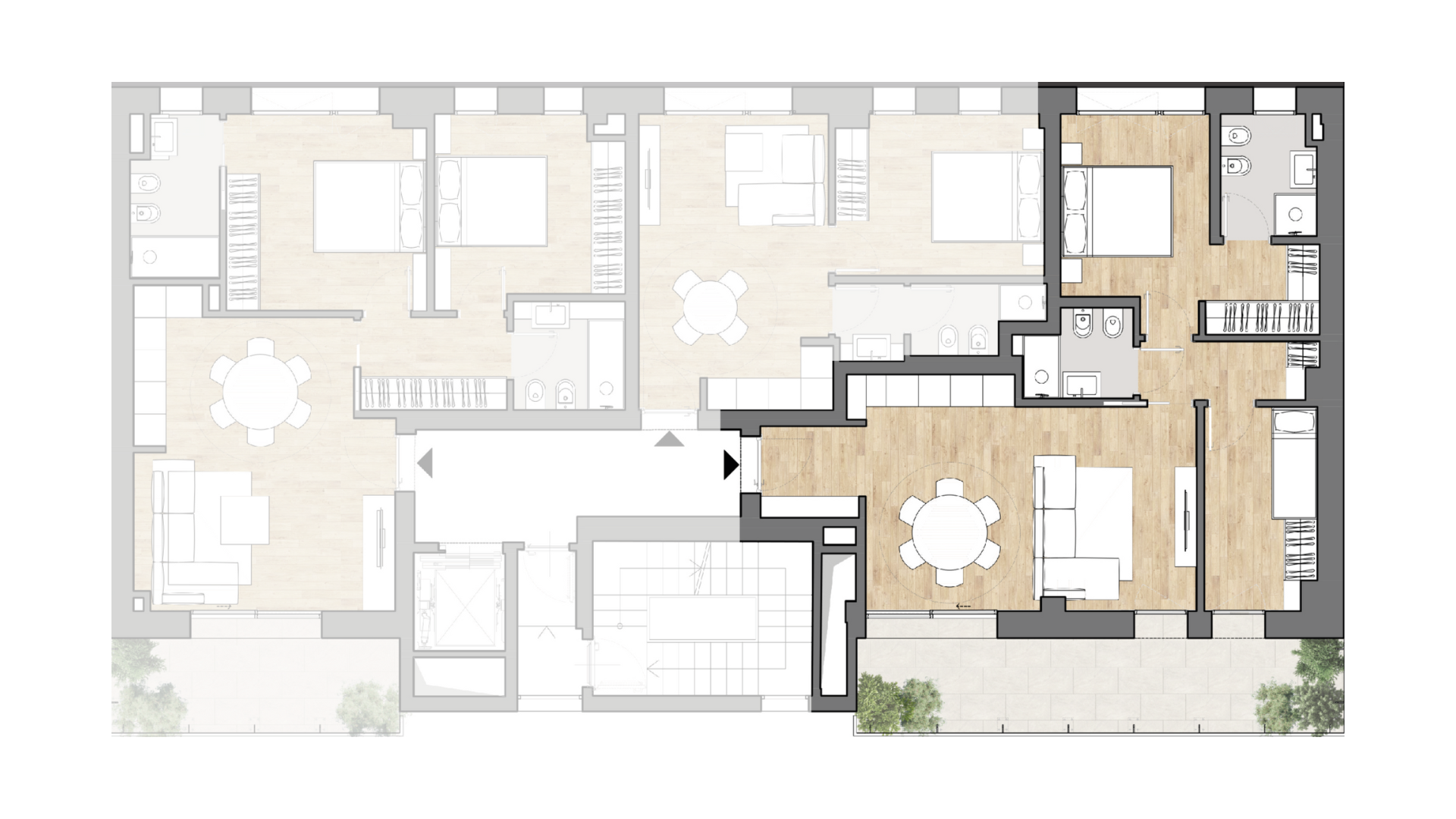 - App. 0.2: trilocale di 110 mq al piano rialzato con terrazzo privato -> €1.005. 000